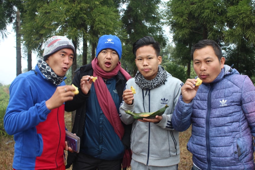 ईस्कुसको तरुलबाट बनेको पकैडा खादै आन्तरीक पर्यटकहरु