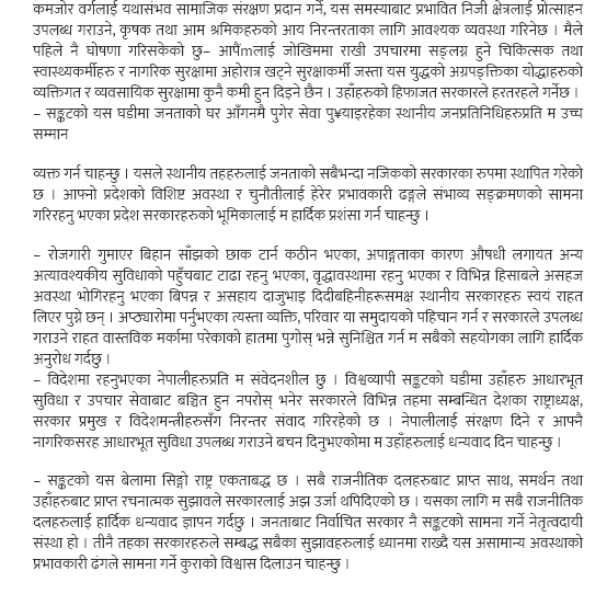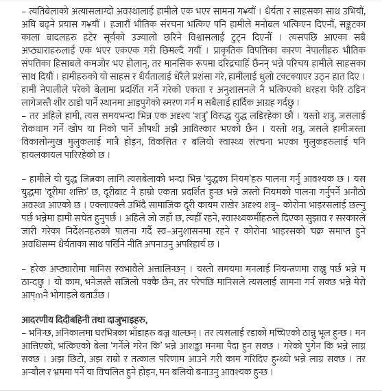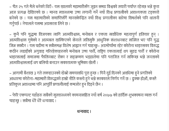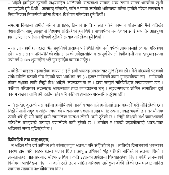 प्रधानमन्त्री ओलीले दिनुभएको शुभकामना सन्देश (पूर्णपाठ) ः