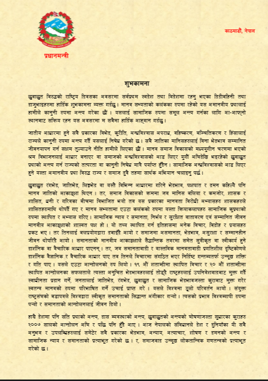 प्रधानमन्त्रीको शुभकामना सन्देशः